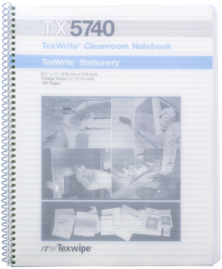 TexWrite® spiral-bound cleanroom notebooks are used for note taking and data recording in the cleanroom. These cleanroom notebooks feature high-density polyethylene covers, plastic spirals and durable TexWrite® copolymer cleanroom paper. Pages are printed with IPA resistant, low-sodium ink for reduced ionic contamination. Notebooks lie flat and pages rotate freely for ease of use.