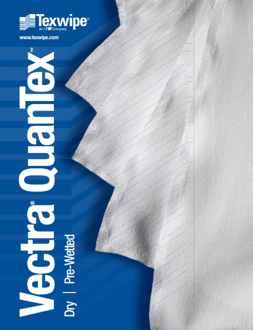 Vectra® QuanSat™ pre-wetted cleanroom wiper is made from 100% polyester with a sealed border, processed on Texwipe’s automated cleaning system.
